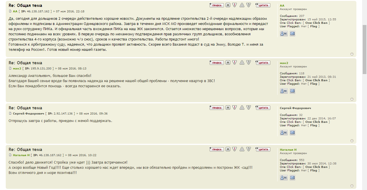 Не нужно обвинять меня в клевете, я написал лишь о том, что я вижу как админ форума. Я не на чьей-либо стороне, я житель этого комплекса, который устал от бардака, мошенников, обмана и хочет позитивных перемен. К сожалению, вероятность повторения ситуации первого корпуса очень велика - к управлению домом рвутся люди, которые не стесняются в выборе средств борьбы, а это плохой сигнал нам всем.