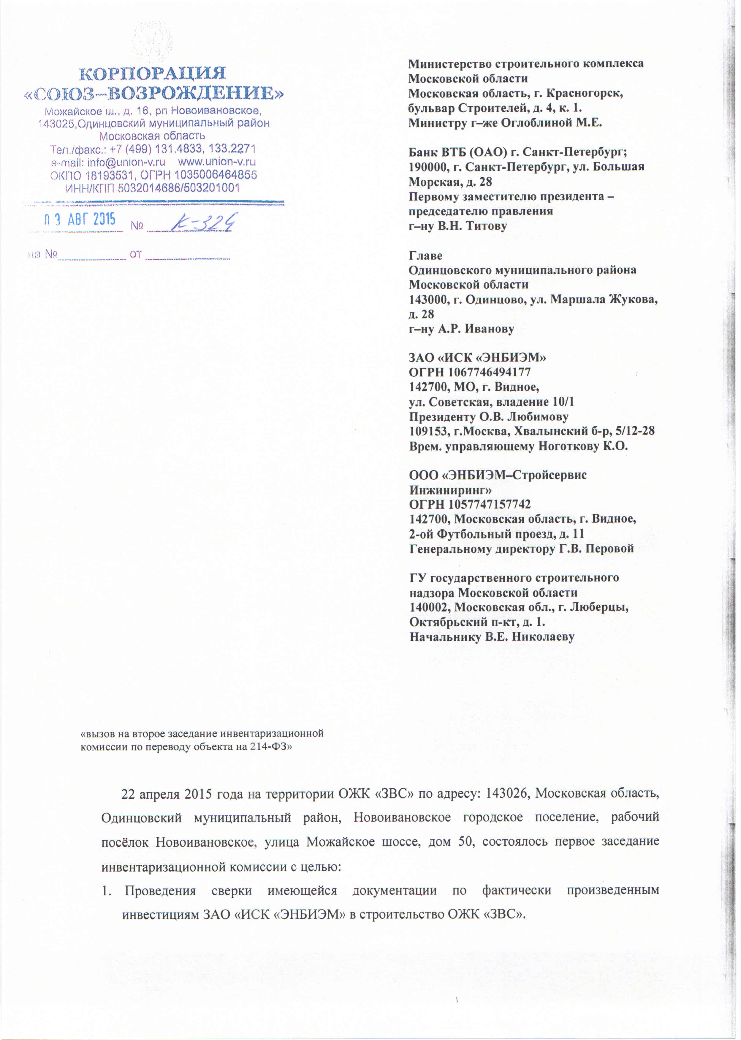 Иск СВ к Совету депутатов одинц. района о неПРИЗНАНИИ их ( депутатов) решения по признанию ЖК ЗВС - ПРОБЛЕМНЫМ объектом ( корпуса2,3,4.