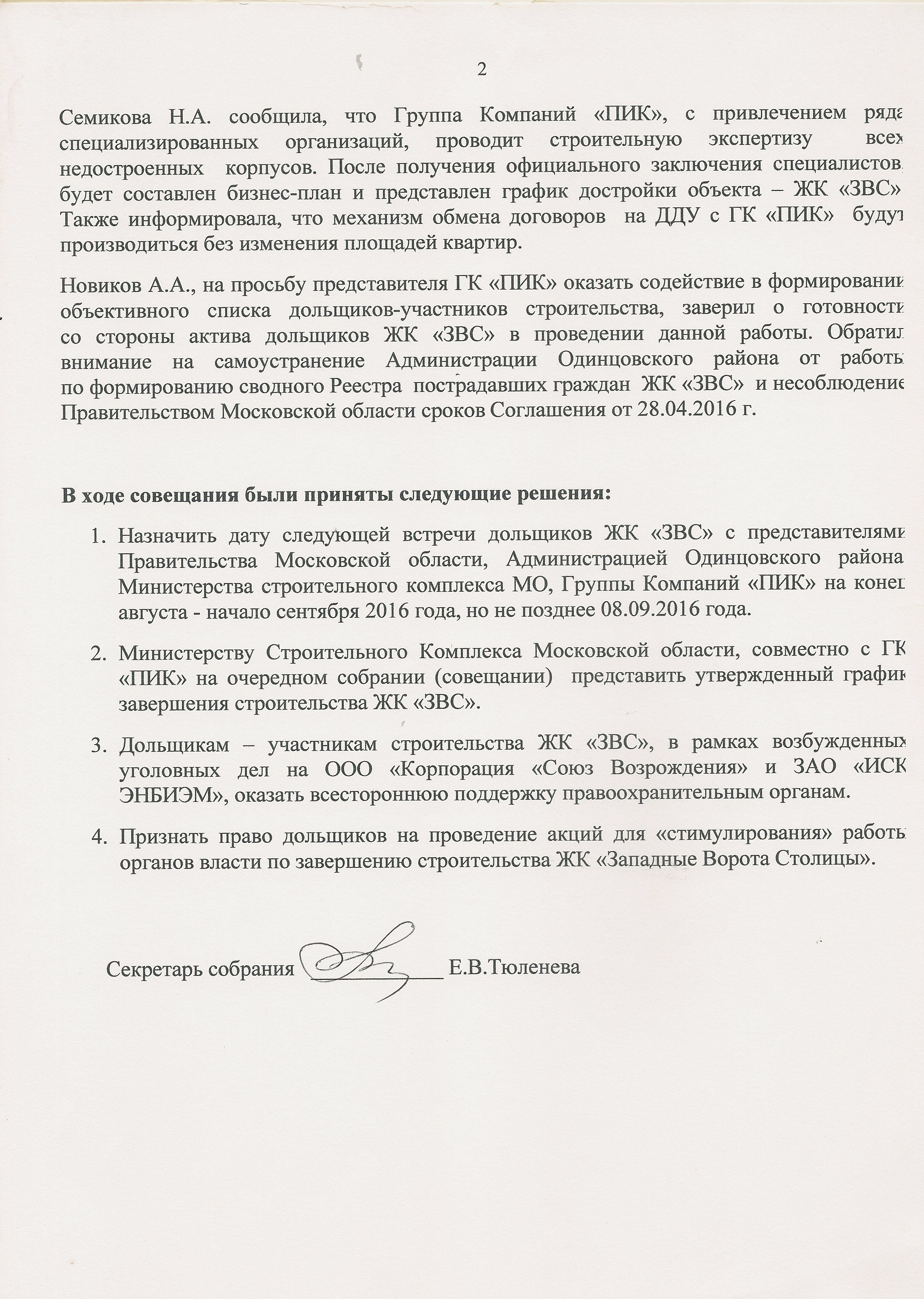 Выкладываю протокол совместного совещания дольщиков 2 и 3 очереди с представителями Власти и ПИКа от 22 июля 2016года.