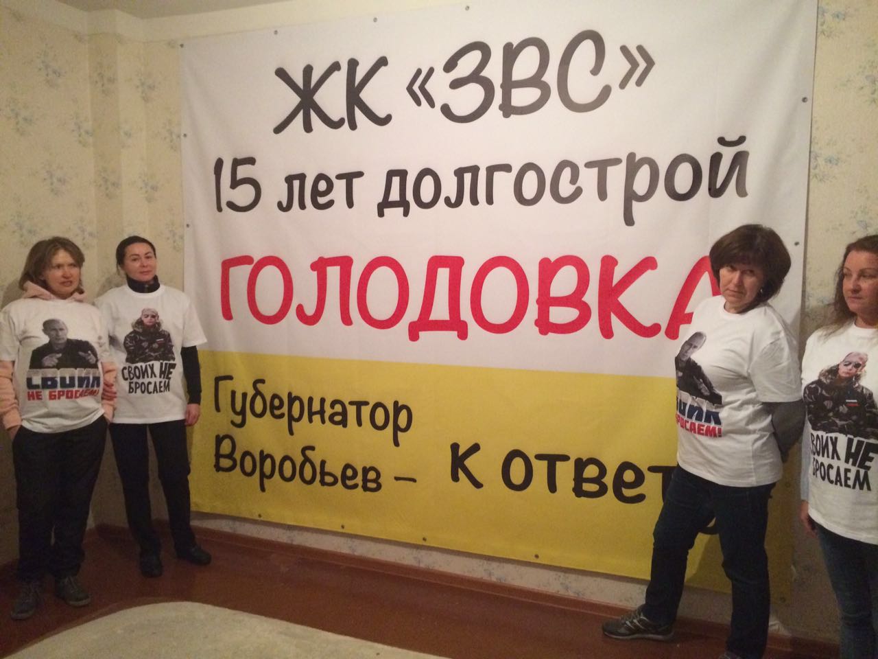 Ранее участники голодовки направили обращения к Президенту России Владимиру Путину и губернатору Московской области Андрею Воробьёву с требованием незамедлительного принятия мер по прекращению пятнадцатилетней трагедии десяти тысяч бездомных граждан России – членов семей собственников недостроенного жилья ЖК «ЗВС».