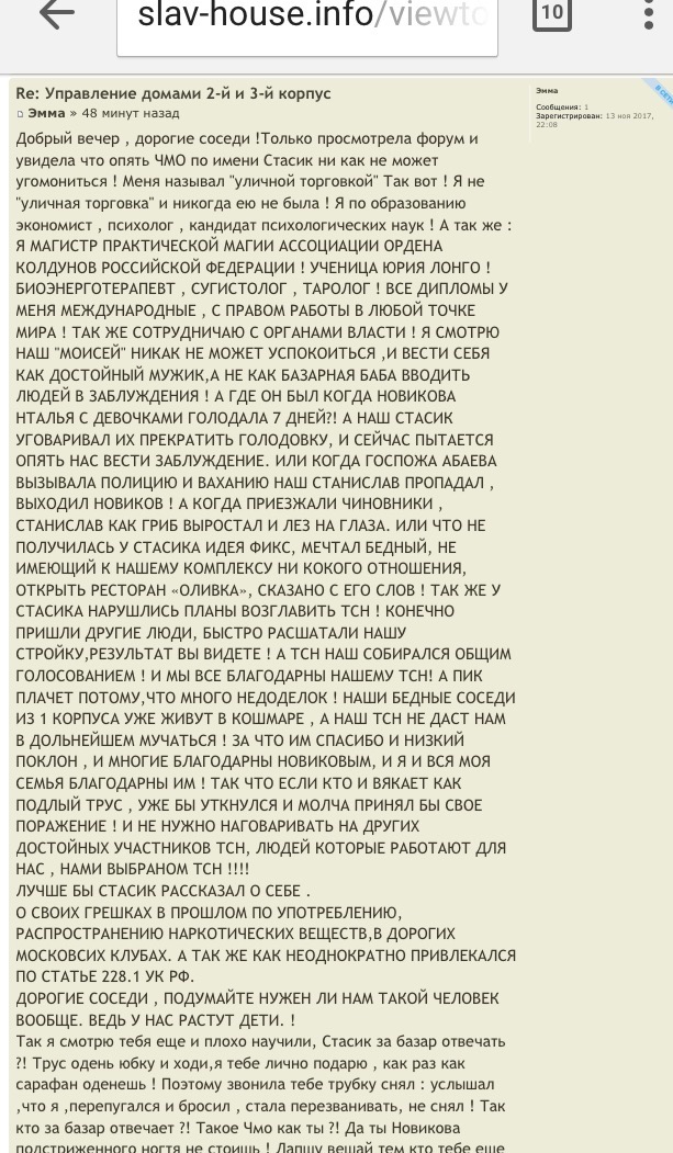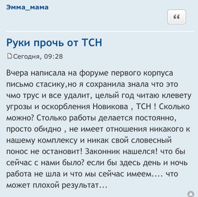Пожалуй, добавлю сообщение Эммы на общий форум. Эмоциональное очень. На форуме Новиковых оно несколько "урезано" мягко говоря...