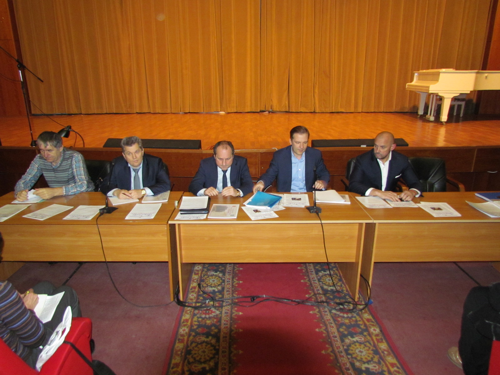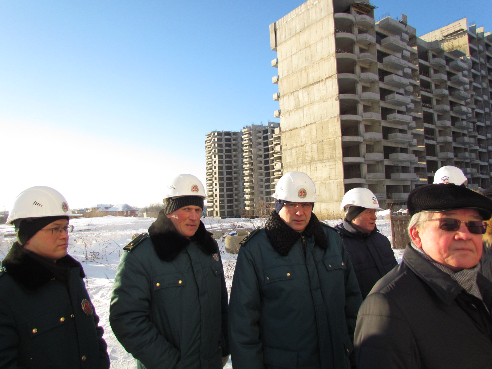 Слева-направо: Владимир Моисеев - служба безопасности ПИК-а, Олег Кульчицкий - зам начальника управления МСК, Владимир Борщенко - начальник управления по решению проблем незавершенного строительства МСК, Юрий Некрасов - руководитель проекта ПИК-а по ЗВС, Михаил Пайсов - Перый зам руководителя Администрации района.