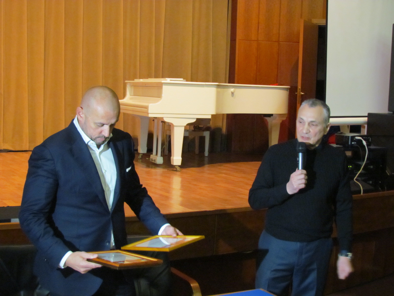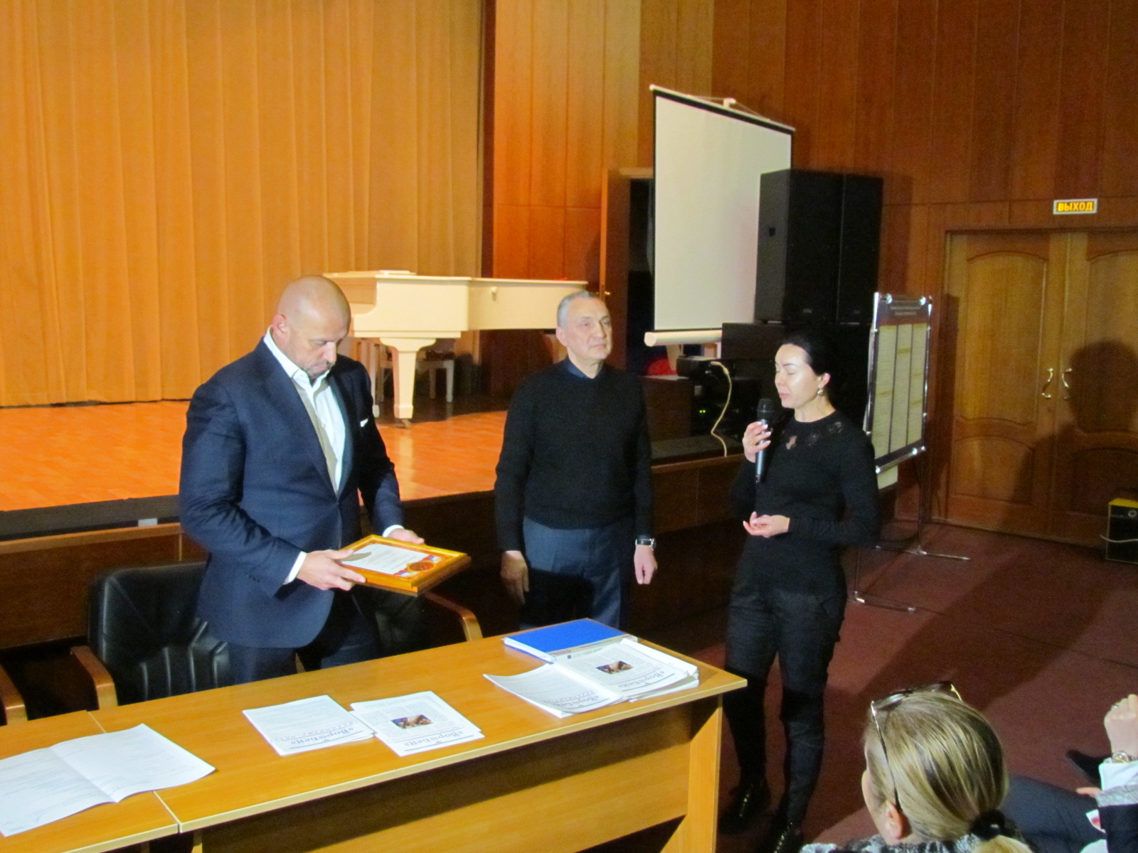 Приветственную речь "толкает" Сергей Колганов, а благодарственное письмо вручает Татьяна Виенко.