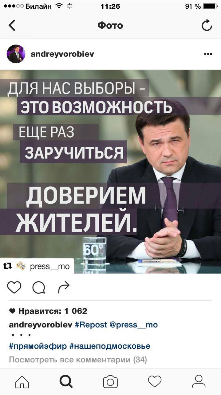 Андрей Воробьев: " Для нас выборы-это возможность еще раз заручиться ДОВЕРИЕМ ЖИТЕЛЕЙ".