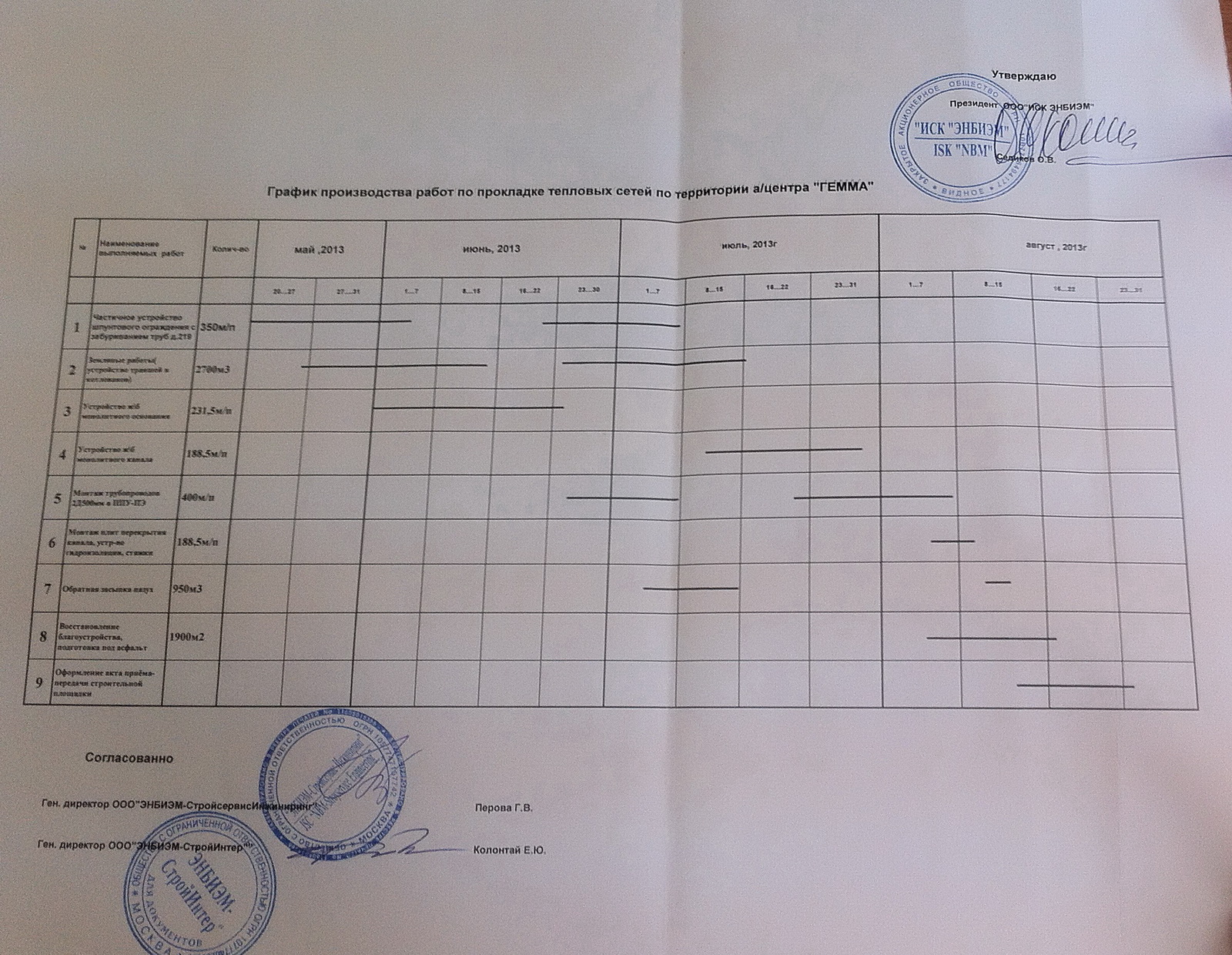 В ближайшее время на сайте НБМ будет выложен график работ по теплотрассе. На текущей момент отставаний нет. Возле гаража работы могут проводиться круглосуточно, на стоянке - только в ночное время (с 20 до 8). Сейчас работает 3 экскаватора и 30 чловек. Скоро должны привезти труды, тогда еще 1 человек будут их сваривать. Коханный лично проверил работы по теплотрассе и убедился, что они идут. Все вопросы с Гемой решены. За просрочку работ на территории Гемы НБМ грозит штраф, со слов Седикова, так что затягивать с теплотрассой они не будут.