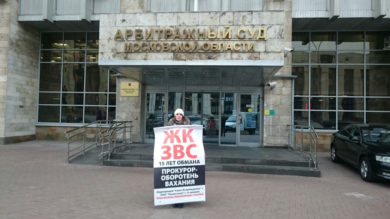 Одиночный пикет у Арбитражного Суда. Спасибо нашей Марине за проявленный героизм!!!