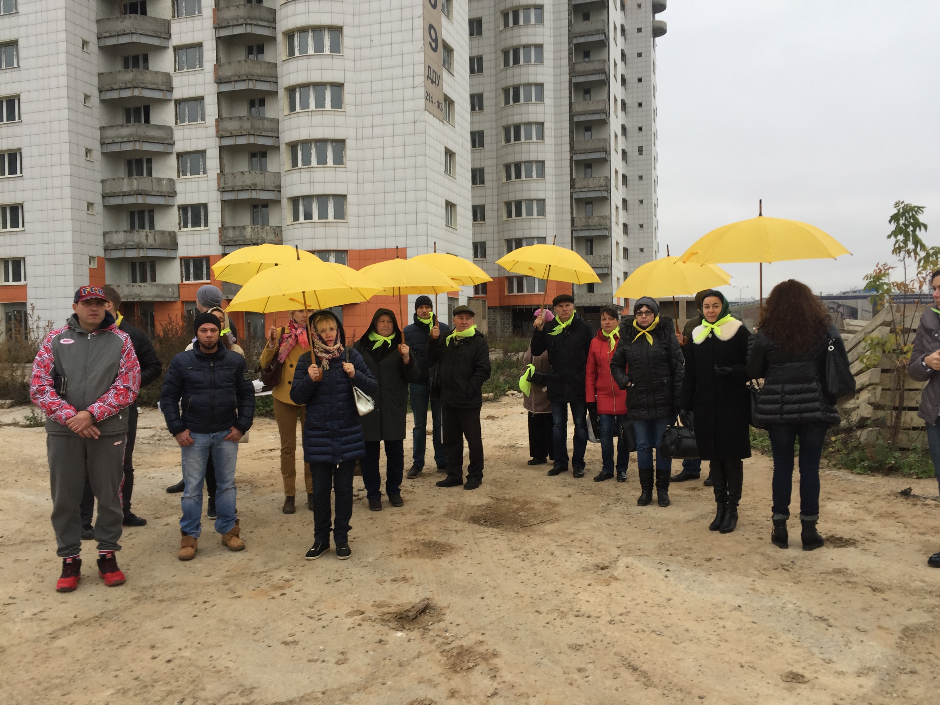 Съемка телеканала возмущенных дольщиков на недостроенном объекте ЖК "ЗВС" (Славянка Сколково)