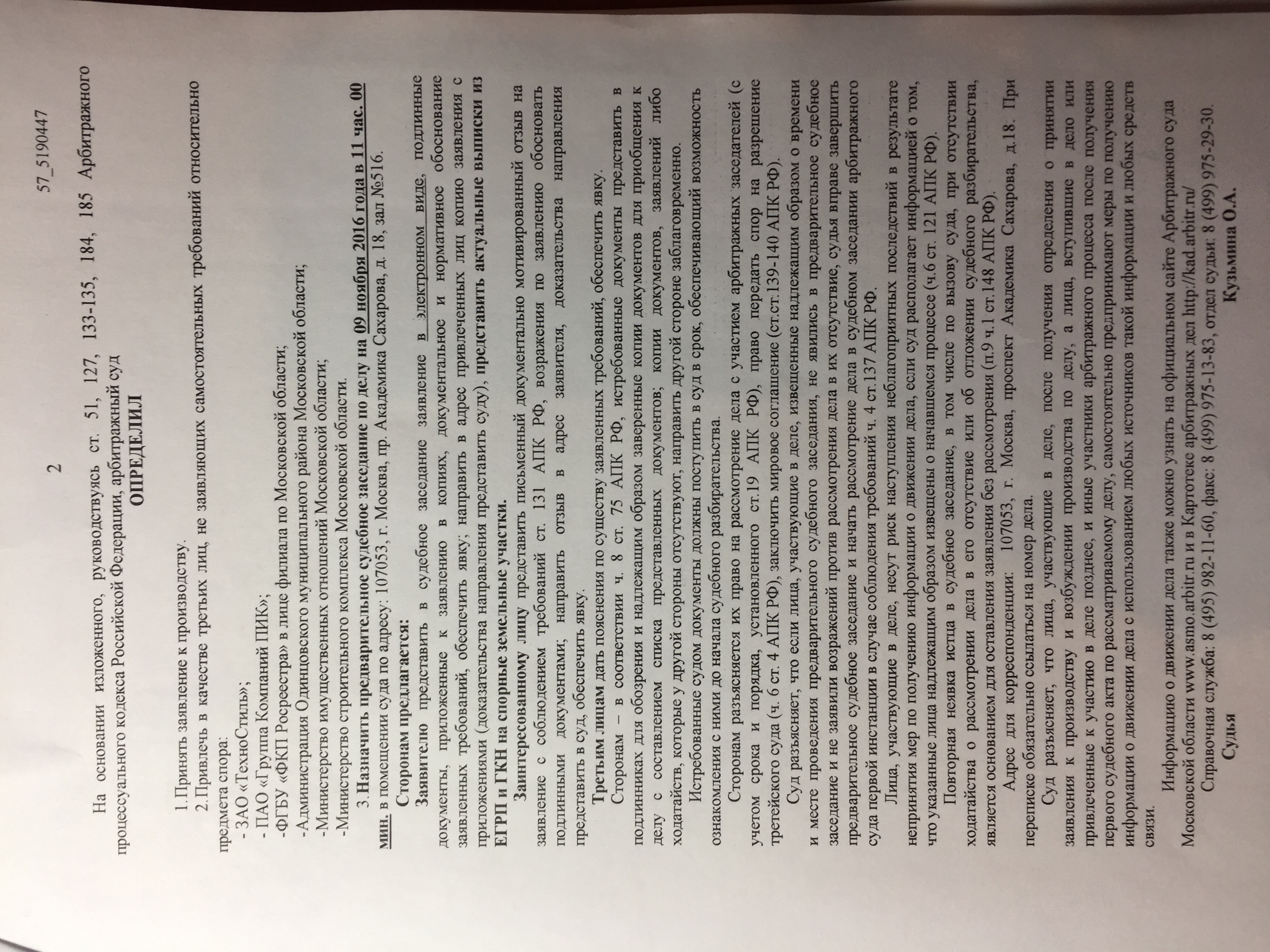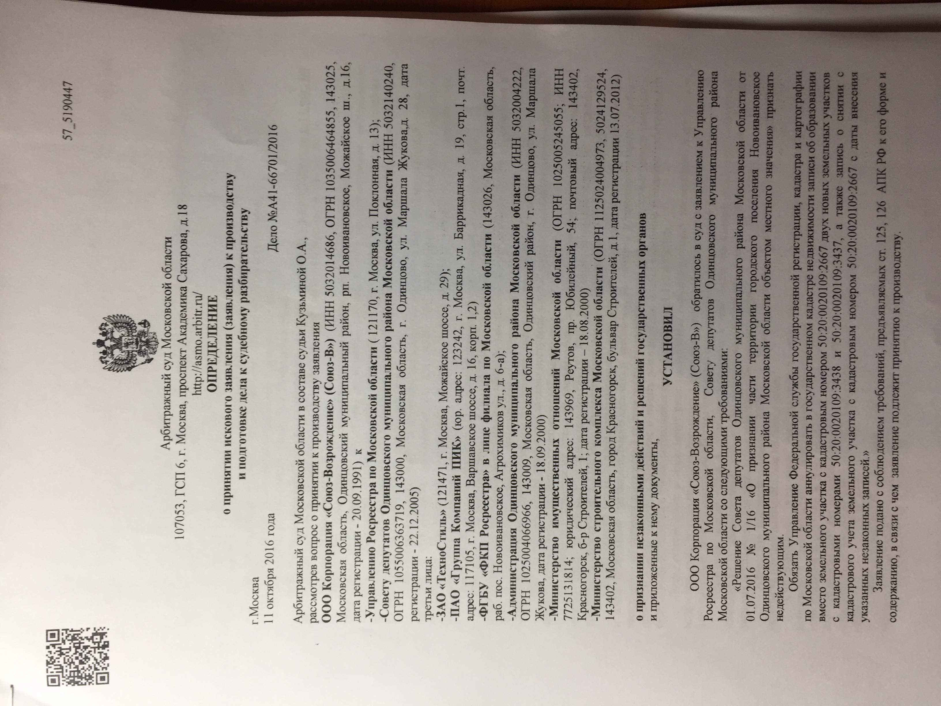 АА писал(а):Наша главная задача, для всех категорий граждан - выиграть в Арбитражном суде ДЕЛО №А41-66701/2016! Точнее, отстоять законность принятого Решения Совета депутатов Одинцовского муниципального района и записи в государственном кадастре недвижимости.