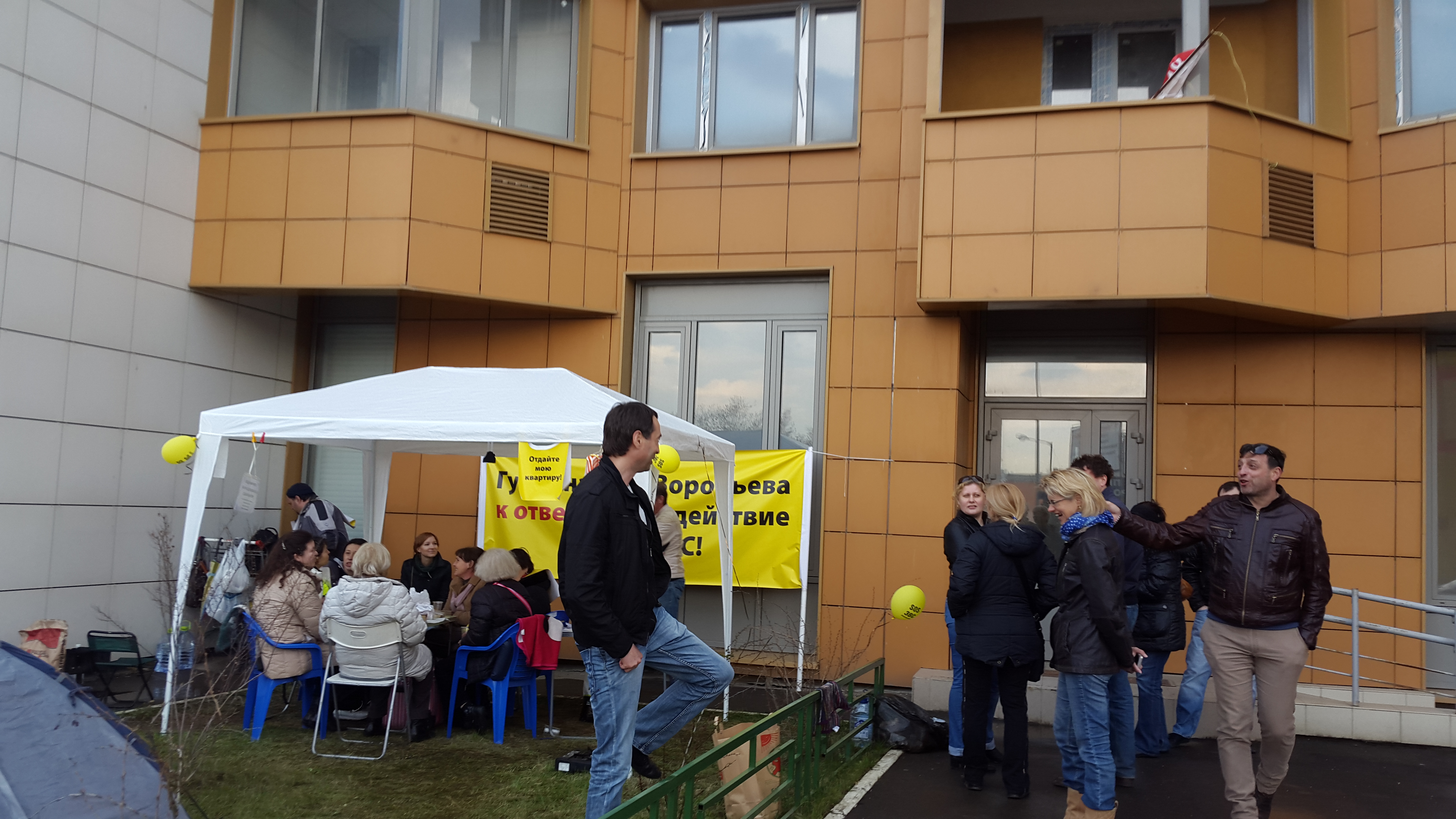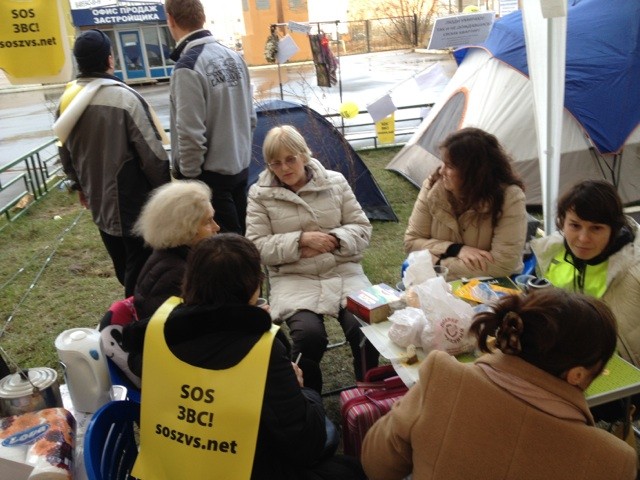 После митинга и автопробега на объекте разбит палаточный городок обманутых дольщиков, которым негде жить, которым нечем платить за съемные квартиры, которые боятся за свои права на жилье.