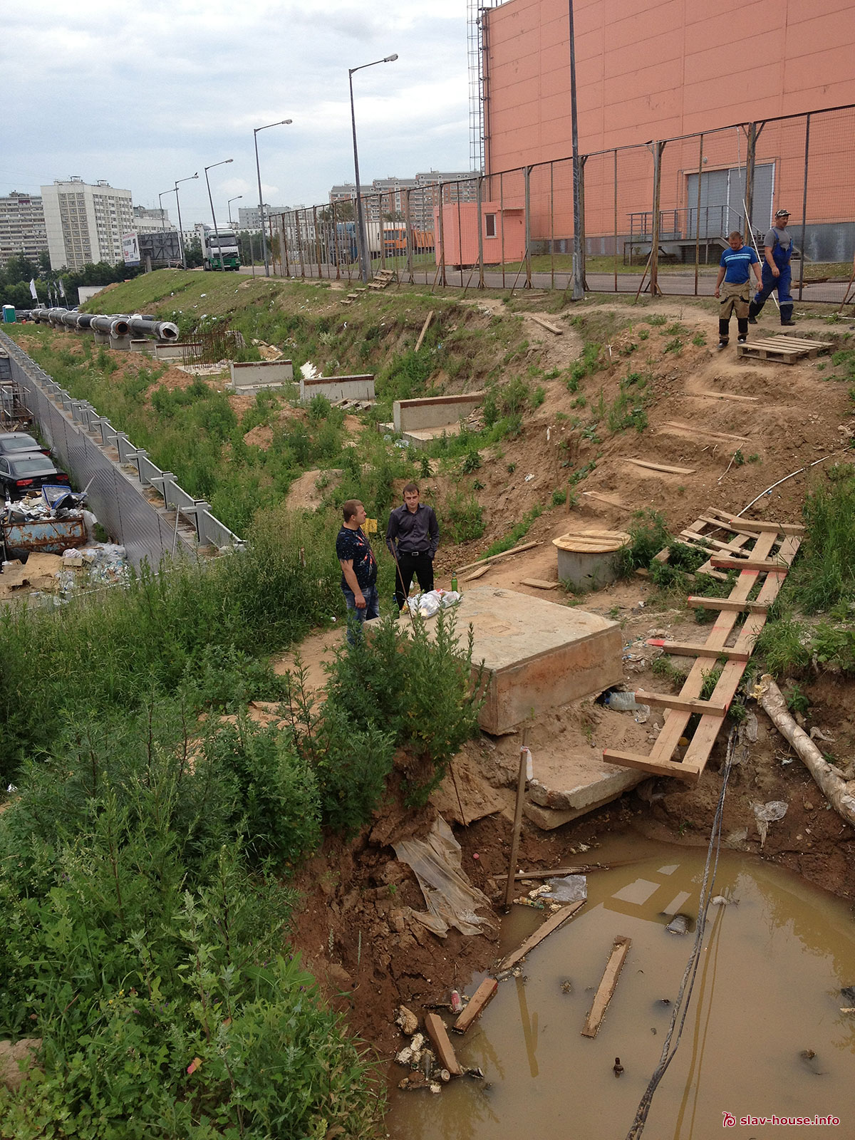 Сегодня днем был на стройке. Теплотрассу действительно начали строить, несмотря на выходной день, работа не останавливается. Во время съемки рабочих на самой трассе не было, они возвращались с обеденного перерыва (двоих видно на третьей фотографии, идут от Ашана). Если сравнивать с предыдущими фотографиями, прогресс налицо. Удалось пообщаться с рабочими - настроены оптимистично, говорят, что до начала осени вполне реально закончить работы. Говорят также, что за последние дни тут столько побывало начальников и всевозможных проверок, что они уже сбились со счету. Рабочие все славяне, вполне адекватные, работают с 8 до 20 вахтовым методом по 15 дней. Видел двоих рабочих у самого комплекса, сказали, что только что прибыли на объект и ждут инструкций от бригадира. Возможно, работы пойдут с двух сторон, но это еще не точно (на последнем фото видна арматура со стороны комплекса). Строительных работ на самом комплексе на заметил - полная тишина. Возможно, просто не заметил.