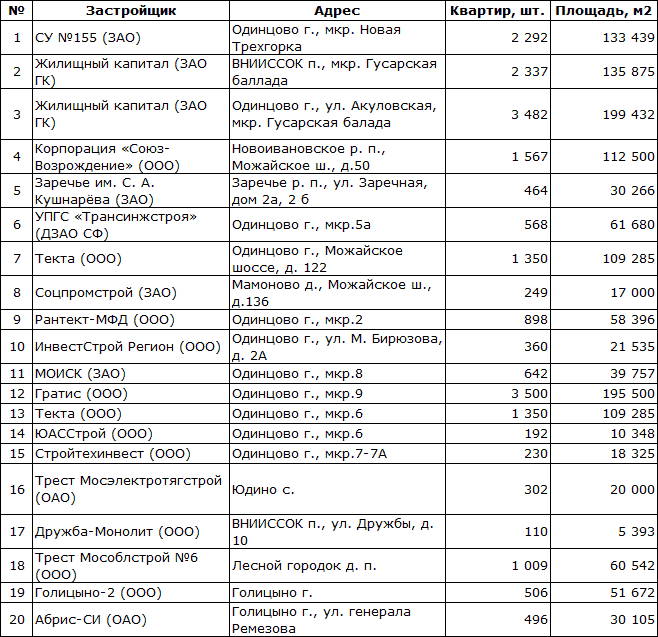 Застройка Одинцовского района в 2013 году
